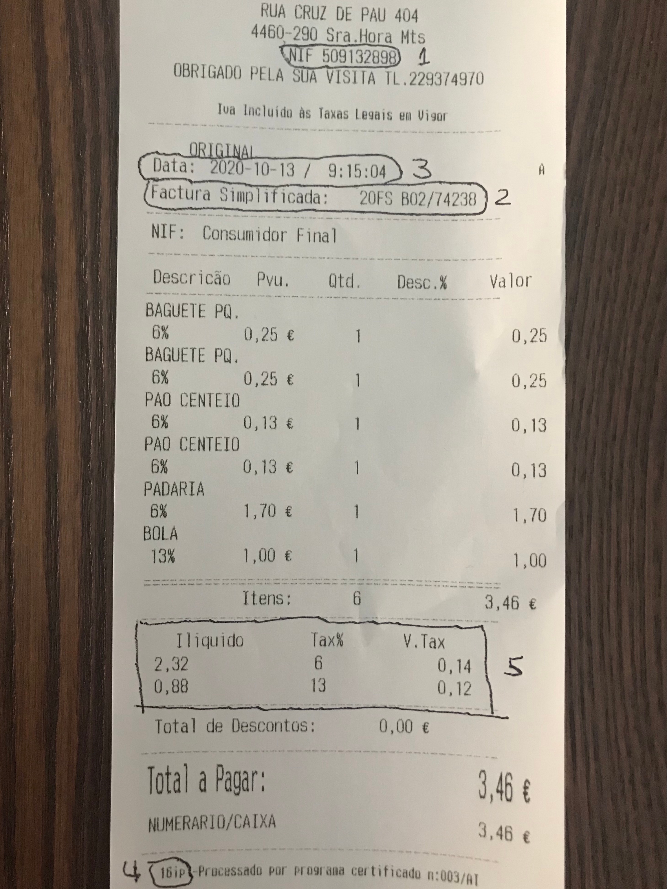 Processado por programa certificadoe que ficam em algum lugar na fatura (já encontrei no final, no meio, basta procurar por 4 letras ou números);Total de Itens por valor de IVA: não é preciso adicionar todos os itens da fatura um por um, basta adicionar os totais por faixa de IVA cobrado. Se necessário, clique no botão Adicionar Linha para criar mais linhas. No exemplo da fatura acima, será preciso duas linhas.